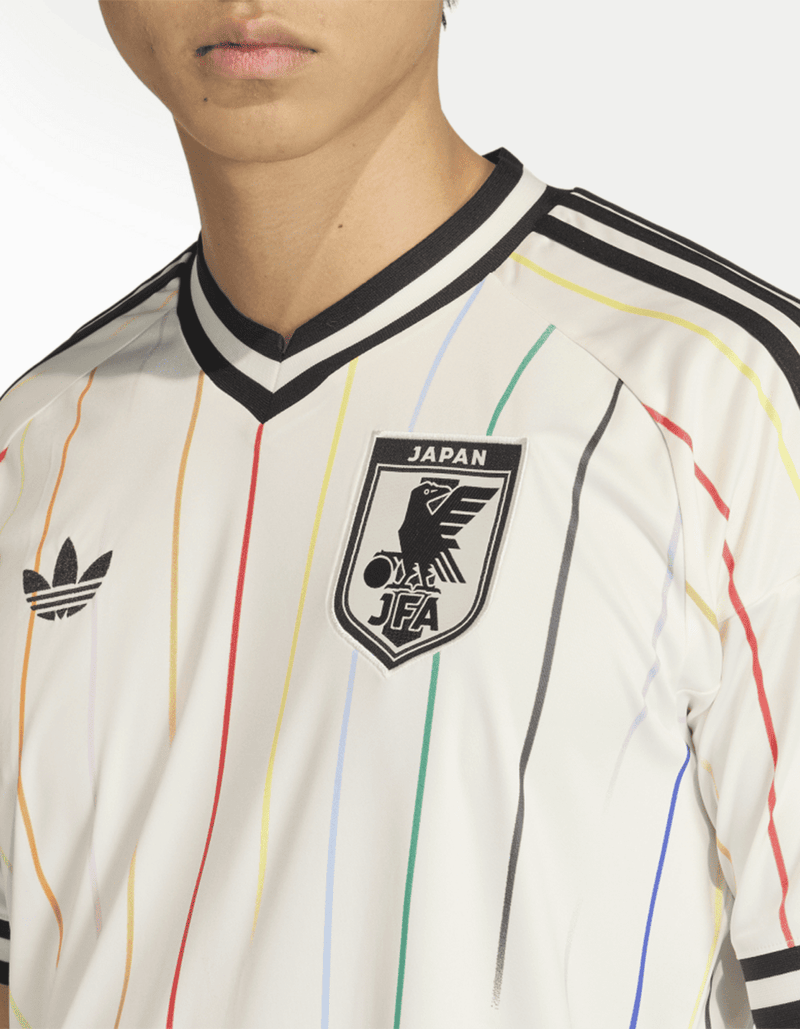Incorpora un diseño de ajuste ceñido y cuello en V para una silueta estilizada, con una cintura acanalada para un toque elegante, mientras que la estructura entrelazada ofrece una sensación cómoda. Lleva el escudo de la Federación Japonesa de Fútbol, complementado con el icónico logo adidas para darle un toque deportivo.