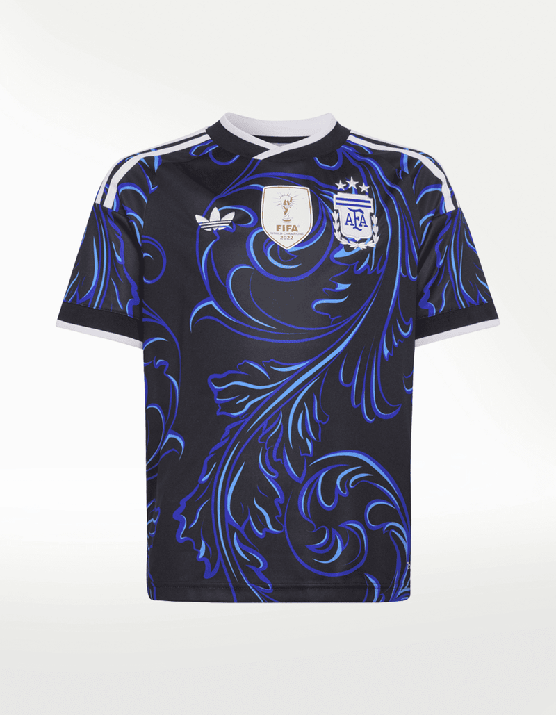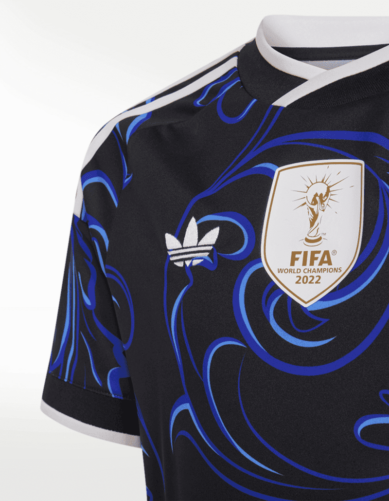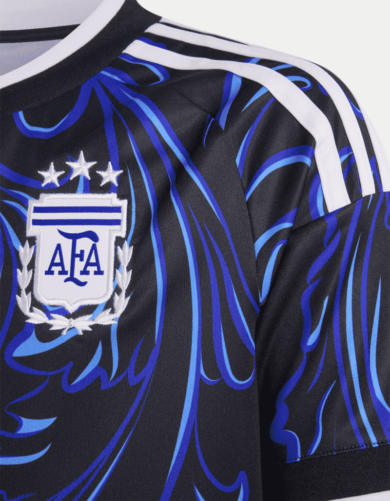 Inspirado en el espíritu vibrante y la pasión creativa que definen la cultura argentina, este jersey visitante de la Selección Argentina 26 de adidas llama la atención con sus líneas onduladas y sus tonos llamativos.