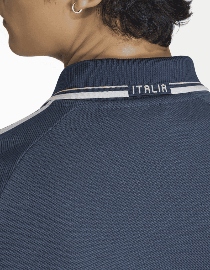 La estructura de tejido de punto doble ofrece una sensación premium y el ajuste clásico brinda comodidad para el uso diario. El cuello clásico añade un toque refinado que alude a los looks icónicos del fútbol y el cierre frontal facilita usarla de manera formal o informal.