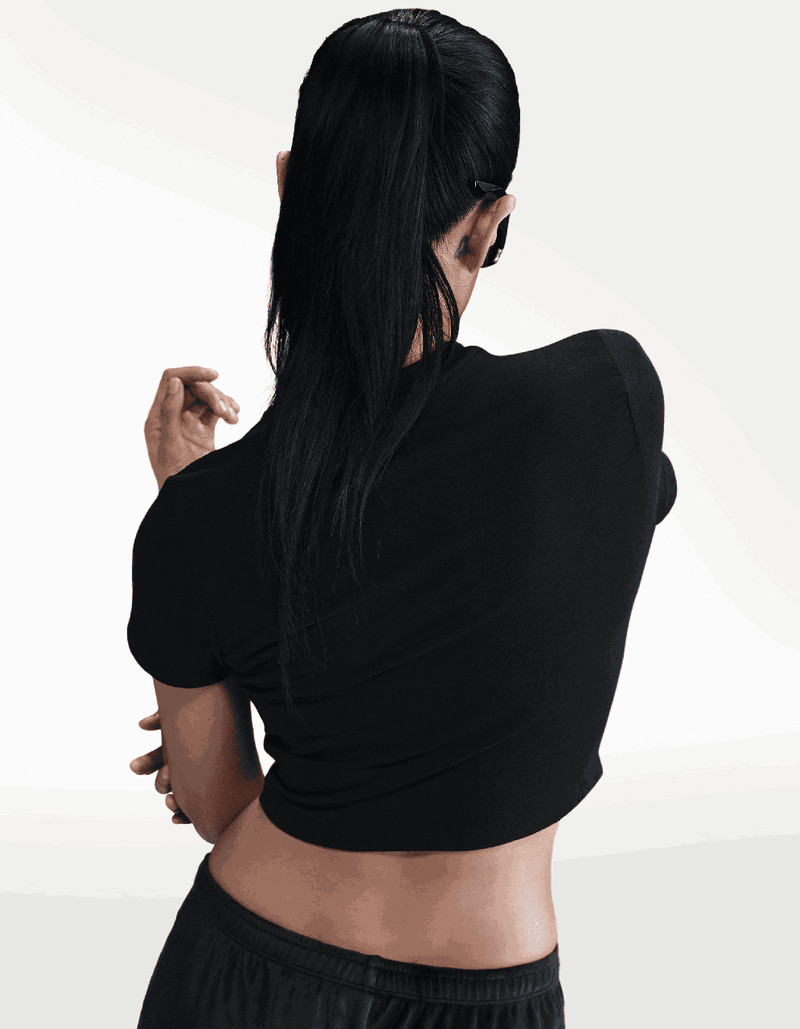 Con un corte cropped moderno, esta playera Nike combina tejido suave y elástico para máximo confort para nuestras sneakerlovers. Su diseño minimalista con branding discreto la hace perfecta para definir un outfit con capas ligeras o para llevar sola en climas con más sol y más calor. Un básico versátil que fusiona deporte y moda en un solo look. ¡La puedes encontrar ya en TAF!