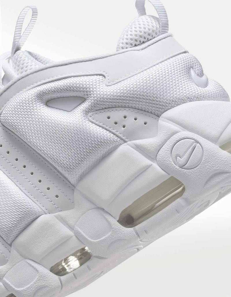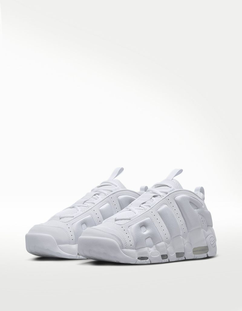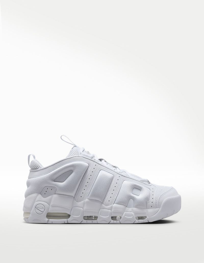 El Nike Air More Uptempo Low es uno de los pares más significativos de los años 90. El par mantiene la energía de su versión original en esta conocida como low. El upper en cuero blanco muestra las letras AIR sobredimensionadas, mientras la unidad Air visible aporta soporte. Su suela gruesa y estructura sólida garantizan un look urbano poderoso, cómodo y sobresaliente por donde lo mires.
